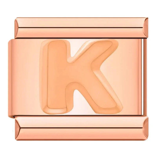 Letter K in Rose Gold, on Rose Gold