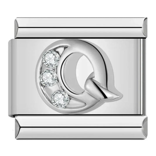 Letter Q with Stones, on Silver