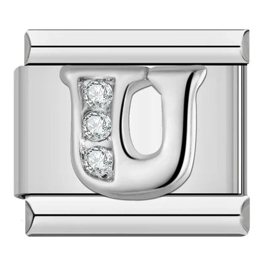 Letter U with Stones, on Silver